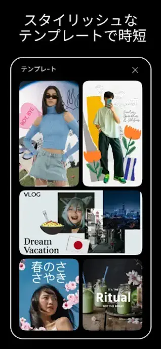 テンプレートが豊富で、動画編集が苦手でも一気におしゃれな仕上がりになるのがすごいです!
