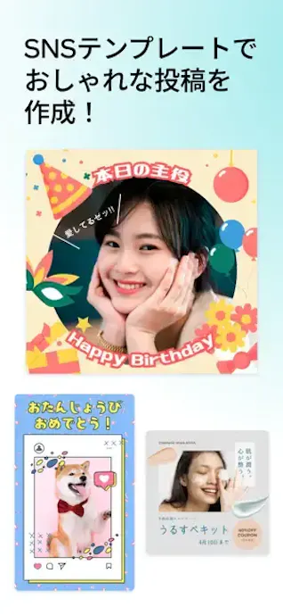 テンプレートが数千種類以上あるため、雰囲気の近い型から入りやすく、写真加工に慣れていない人でも始めやすいのがポイント。