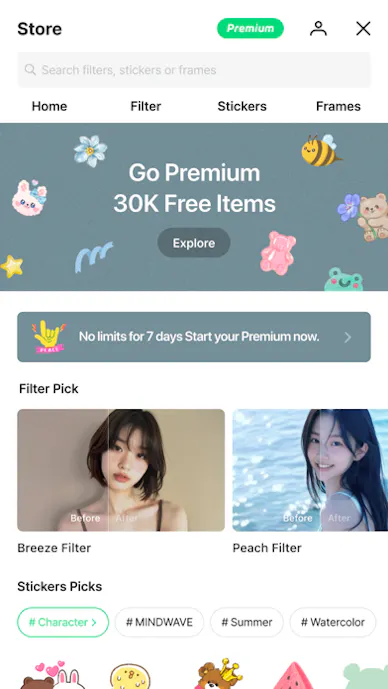 スタンプとフレームは3万種類以上、フィルターも豊富で、かわいい雰囲気の画像を作りたい人にぴったりです。