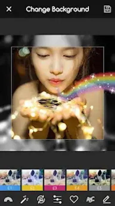 キラキラやレンズフレアも使えるため、幻想的で華やかな一枚を作りたい人におすすめの無料レインボー加工アプリ。