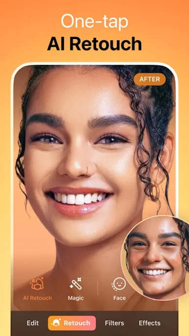 第8位. Retouch Me:口元の補正を選ぶだけでAIが自然に整える!歯の見え方をサッと修正できる無料写真加工アプリ