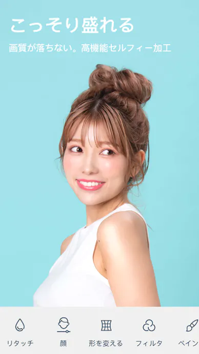 自動美顔補正や歯の補正、背景変更までそろっているため、写真の印象をまとめて整えたい人にぴったりです。