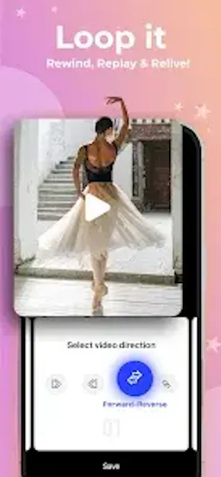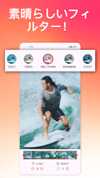 ワンタップでリバース、スローモーション、スピードエフェクト付きのループ動画に変えられます。