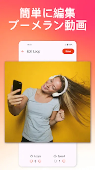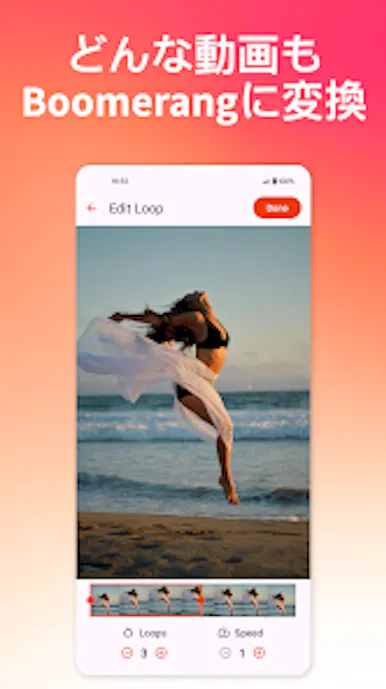 第3位. ブーメランビデオメーカ:好きな場面を切り出してループ動画を作成!撮影した後でも簡単にブーメラン加工できる動画編集スマホアプリ