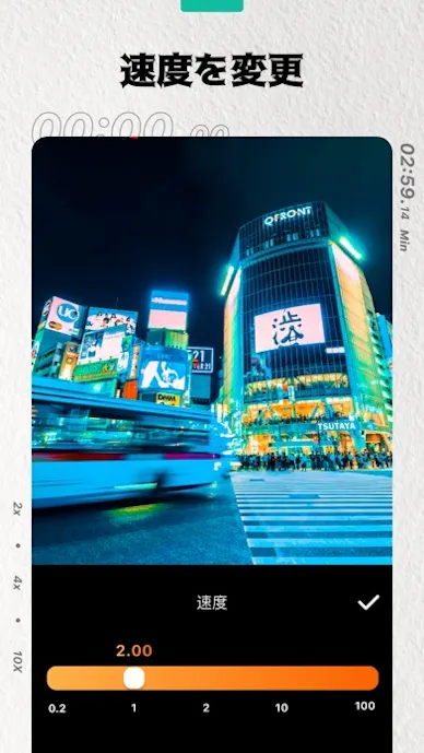 最後に、『速度』をタップして、動画の速度を調整しましょう。