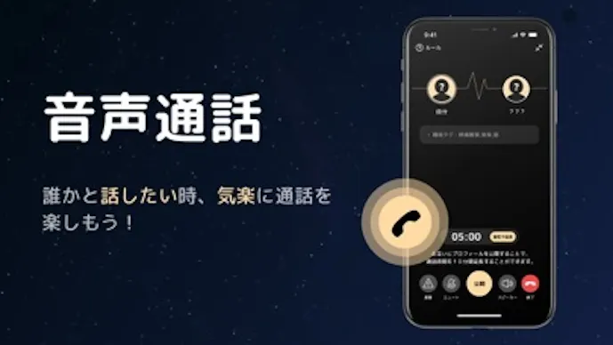 通話前にプロフィール確認ができ、カメラのオン・オフも選べるので、まずは声だけで話したい人にもぴったりです。