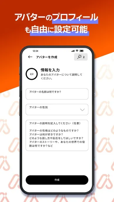 役割や性格、趣味、職業まで設定でき、自分向けの話し相手を作れます。