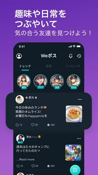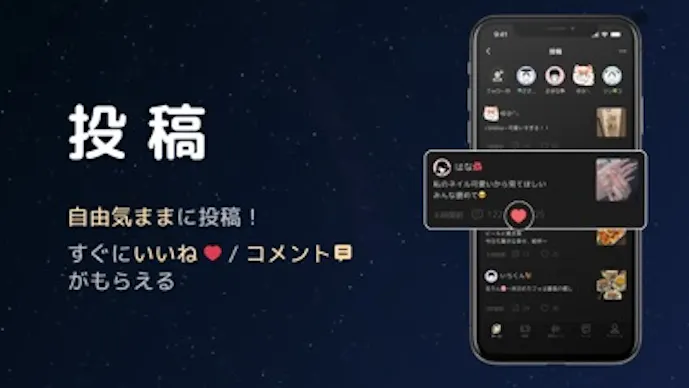 日常の出来事や悩みを投稿できるほか、「みつける」で気になる話題も探せます。