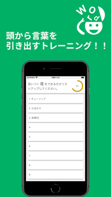 第2位. 言葉を引き出すトレーニング:身近なお題で語彙力や雑談力が身につく!返事の瞬発力を鍛えられる無料のコミュニケーション練習アプリ