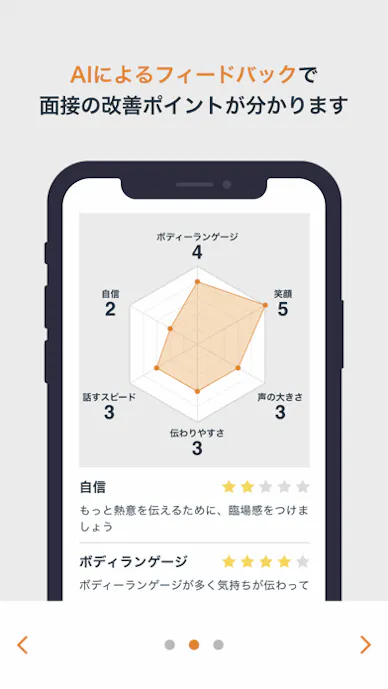 自撮りで始められ、第一印象から話し方まで細かく見てもらえるのが特徴。