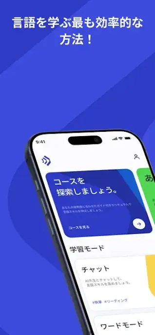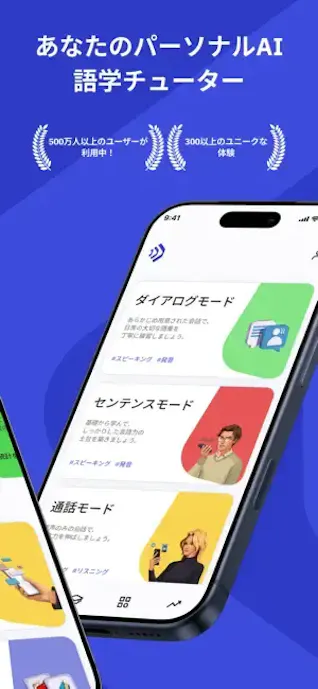 - 会話練習方法:AI相手/チャット形式/通話機能あり