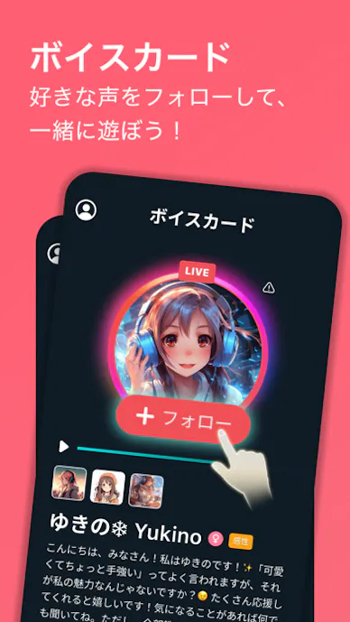 音声ルームでも自然に会話を広げやすくて、やり取りするのが楽しくなりました!