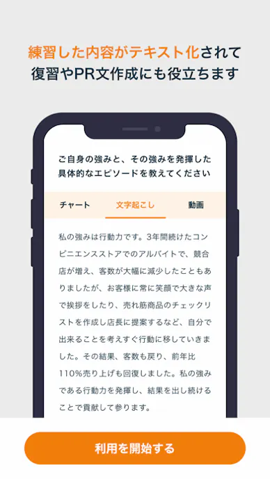 質問に答えて撮影し、文字起こしとAIのGood&Moreを見て直すだけなので、使い方もとてもわかりやすいです。