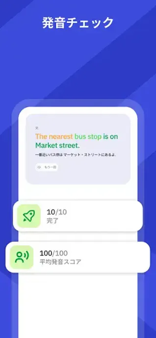 声に出す練習では、録音しながら発音のフィードバックやスコアも確認できます。