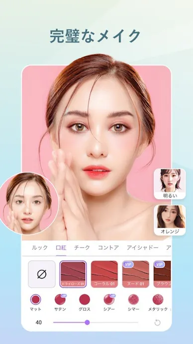 ニキビ・シミ消しやしわ補正、メイク、髪色変更までまとめて触れるのが強み。