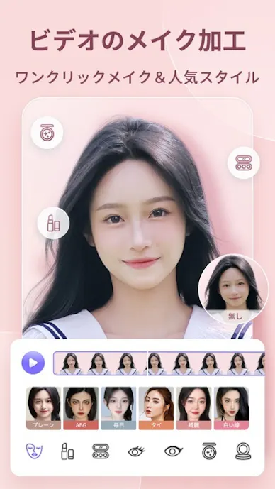 使い方はとても簡単で、動画を読み込み、レタッチやメイクを選ぶだけ。