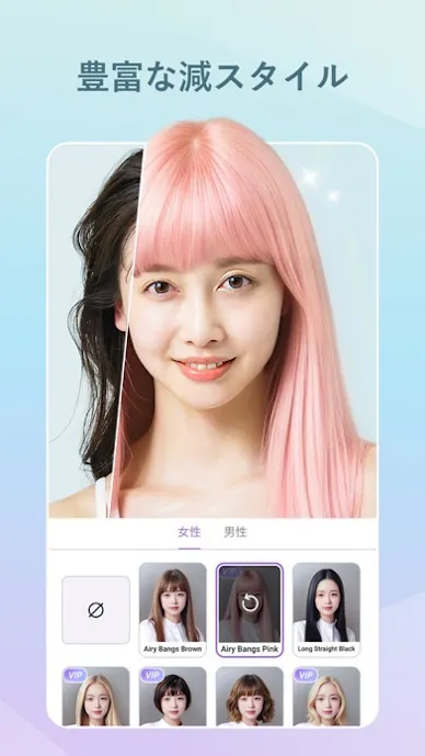 前髪補正や生え際補正、ヘアカラー変更まで使えるため、顔まわりの印象を細かく整えられます。