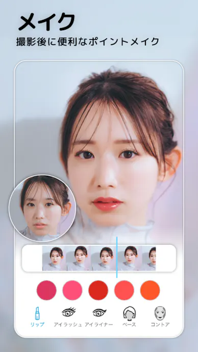 リアルタイムでメイクや髪色を試し、そのまま撮影できるので初めてでも分かりやすいのが魅力。